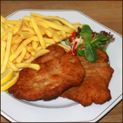 Wiener Schnitzel mit Pommes frites dazu Salat | ||