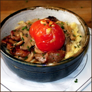 Schwabenteller(Schweinefilet, Champignonrahmsoße, Käsespätzle) mit Salat | ||